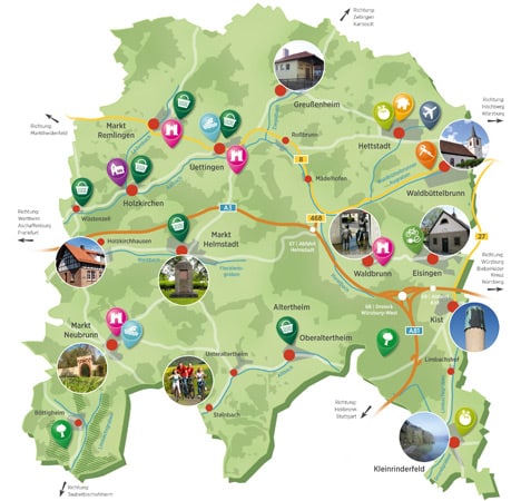 Radeln Sie los oder erkunden sie die Region zu Fuß bei einer Wanderung. Es erwarten Sie herrliche schattige Mischwälder und weite Fluren mit Ausblicken. Freuen Sie sich dabei auf ein gut ausgebautes Freizeitwegenetzin unserer Region zwischen Würzburg, Wertheim und dem Taubertal.