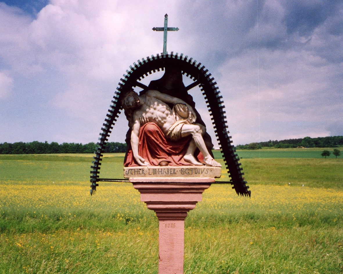 Zahlreiche Bildstöcke, Wegkreuze und Kreuzwegstationen.