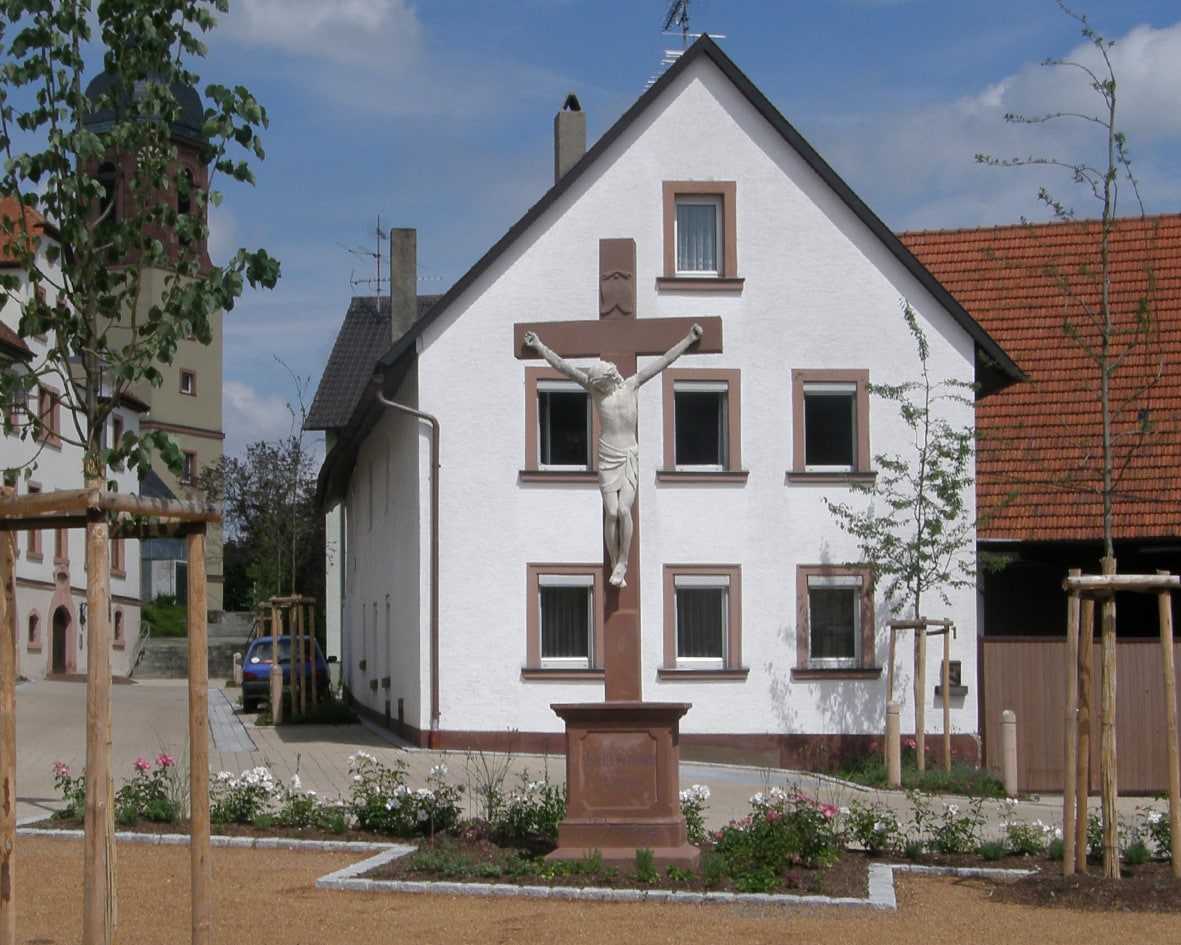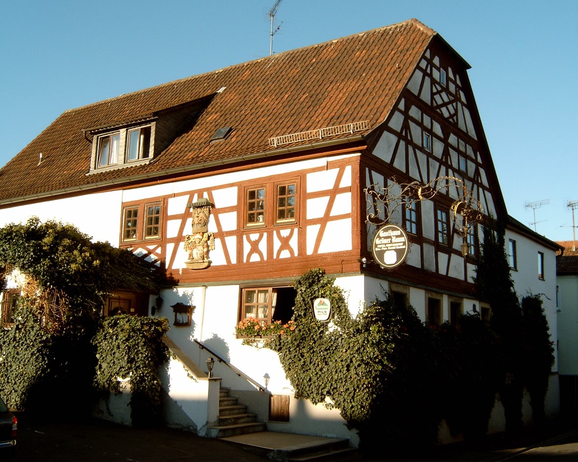 Das Gasthaus „Grüner Baum“ mit dem markanten fränkischen Fachwerk dürfte das älteste Gebäude in Kist sein. Es trägt eine wertvolle Tafel mit dem Bildnis Mariens (1706).